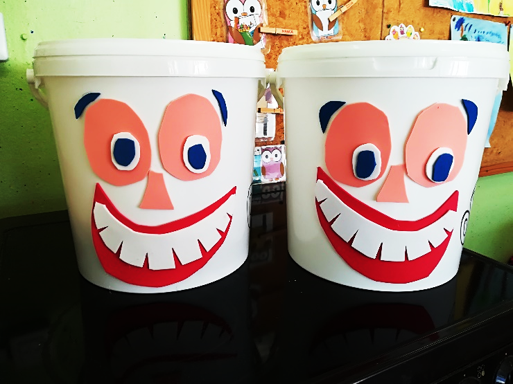 plakatom dodamo še vedra, ki jih poimenujemo »Organkožer«. Nekaj časa v teh
