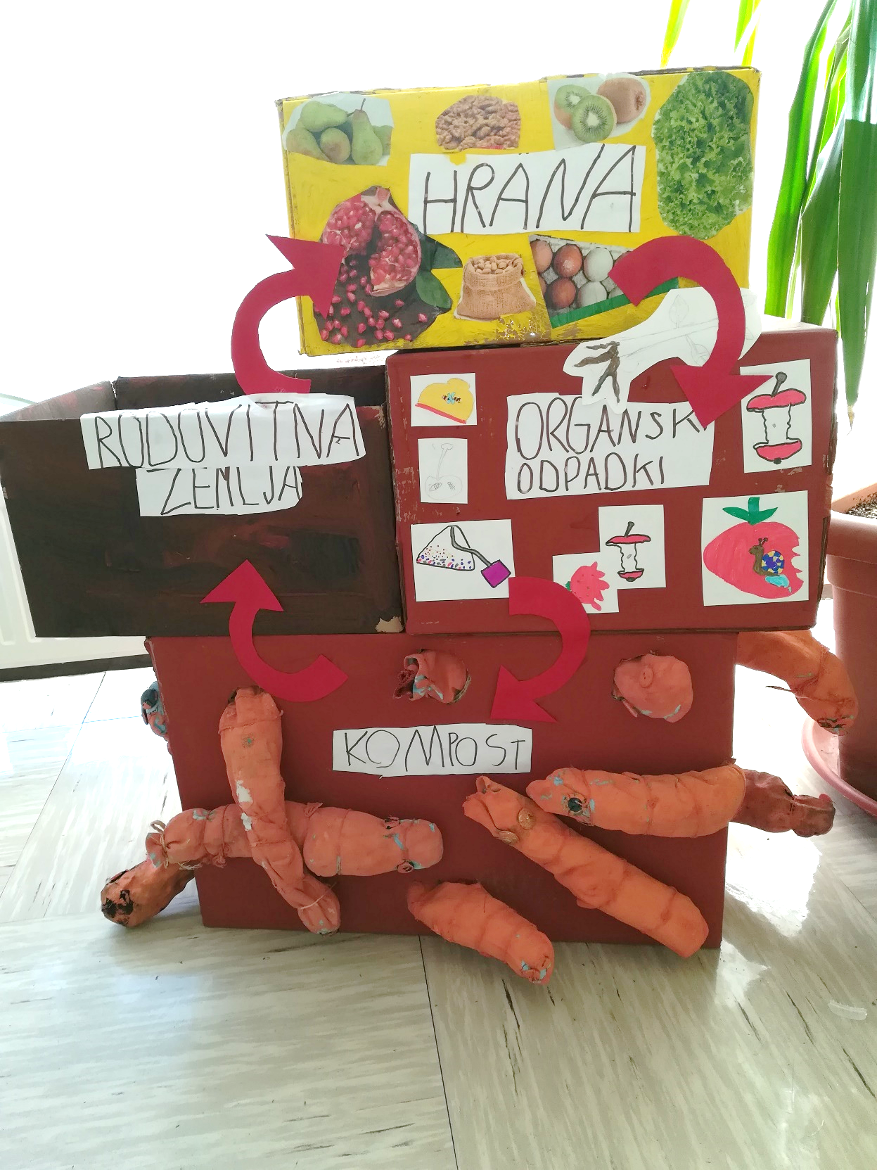 Učenci ob okrogli mizi, delu na šolskem vrtu in delavnicah razmišljajo, kako pridemo do hrane, kako nastane zemlja, da z zbiranjem organskih odpadkov in kompostiranjem varujemo okolje in podnebje. Naučijo se, zakaj je kompostnik pomemben ter kaj spada v kompostnik in kaj ne.