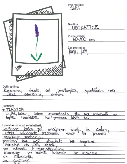 zgradbo cveta, zapisovali recepte iz zdravilnih rastlin, izdelali zemljevid z